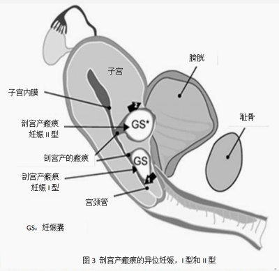 疤痕妊娠主要根据胎囊与创口疤痕的着床位置关系分为三种类型。类型“1”表示胎囊只有一小部分胚胎在创口疤痕处着床,而大部分则位于创口外部;类型“2”指胎囊的一半以上在创口内,少部分位于外部;类型“3”则是胎囊的全部胚胎都在创口疤痕内着床。