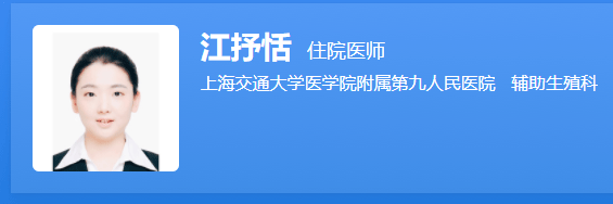 江抒恬,上海交通大学医学院附属第九人民医院生殖医学科的住院医师,获得医学博士学位,本科和硕士均毕业于上海交通大学医学院。