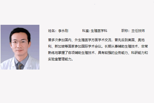 李永刚是云南省第一人民医院生殖医学科的主管技师。他于1994年毕业于云南大学生物系,取得理学学士学位。1996年,他前往广州中山医科大学第一附属医院生殖中心进修人类辅助生殖技术,并于1997年建立了云南省首个生殖实验室,负责实验室的各项工作。