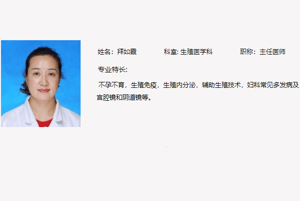 拜如霞是云南省第一人民医院生殖医学科的主任医师,她拥有硕士研究生学位。1996年,她从大理医学院临床医学专业毕业,获得学士学位。2013年,她在云南中医学院获得硕士研究生学位。在1996年至2001年期间,她在楚雄州医院妇产科工作。