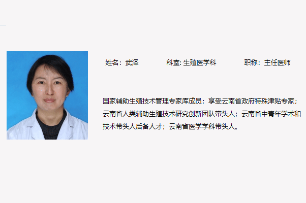 武泽是云南省第一人民医院生殖医学科的主任医师、副教授,同时也是医学博士和博士生导师,并担任生殖医学科的副主任。他主要专注于生殖内分泌疾病的诊断与治疗,以及利用促排卵、体外授精和胚胎移植等多种方法来治疗不孕症。