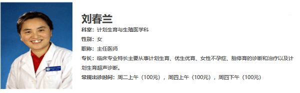刘春兰,现任北京大学人民医院生殖医学科主任医师、副教授。她于1983年8月从江苏省徐州医学院临床医学系毕业,获得学士学位。1996年7月,她又从北京医科大学第三临床医学院妇产科毕业,获得硕士学位。