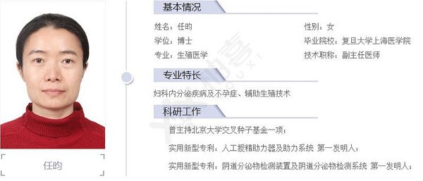 任昀,博士,现任北京大学第三医院生殖医学中心副主任医师,毕业于复旦大学上海医学院。