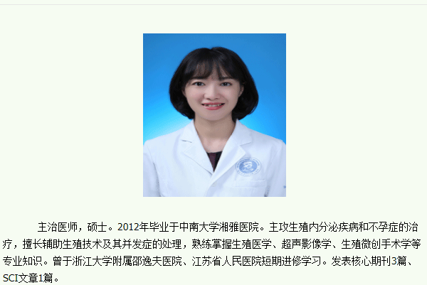 田甜,硕士,现任吉林大学第一医院生殖医学中心的住院医师,曾毕业于中南大学湘雅医院。