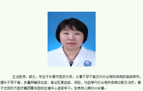 她曾在沈阳东方医疗集团菁华医院的生殖中心进修,并发表了十篇以上的核心期刊论文。