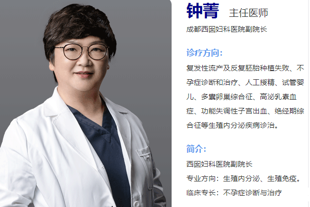 钟菁是成都西囡妇科医院的主任医师,同时担任副院长。她从事妇科、产科、妇科内分泌及女性保健领域已有25年,专注生殖医学超过10年,积累了丰富的专业知识和实践经验,能够处理复杂和疑难的病症。