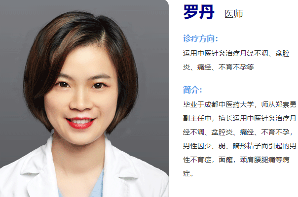 罗丹是成都西囡妇科医院中医科的一名医生,毕业于成都中医药大学,曾师从郑崇勇副主任医师。