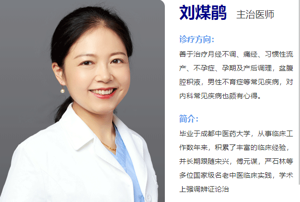 刘煤鹃是成都西囡妇科医院的主治医生,毕业于成都中医药大学。她在临床工作方面积累了多年的丰富经验。