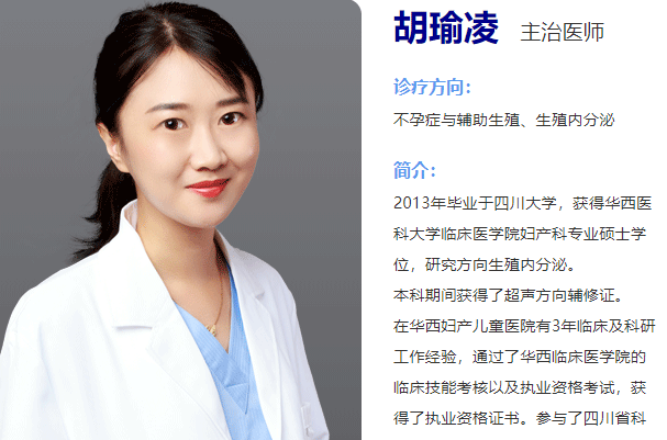 胡瑜凌是成都西囡妇科医院的主治医师,2013年毕业于四川大学,取得华西医科大学临床医学院的妇产科硕士学位,研究方向为生殖内分泌。从2013年到2015年,她多次参加全国生殖内分泌学术会议,积极进行交流与学习。此外,她于2014年3月至5月在重庆市妇幼保健院进行进修,并获得了辅助生殖技术证书。
