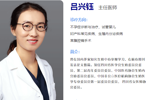 吕兴钰是成都西囡医院的主任医师,拥有硕士学位,并担任生殖中心的副主任。