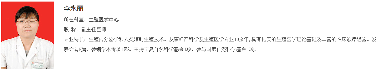 李永丽是宁夏医科大学总医院生殖医学中心的主任医师。