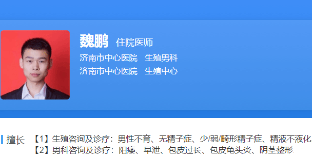 魏鹏,济南市中心医院生殖男科的住院医生,自2020年9月起在该科室任职至今。
