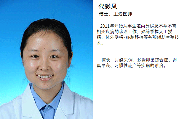 代彩凤是山东大学齐鲁医院不孕不育诊疗中心的主治医生。她于2001年至2006年在滨州医学院学习,获得了临床医学学士学位。
