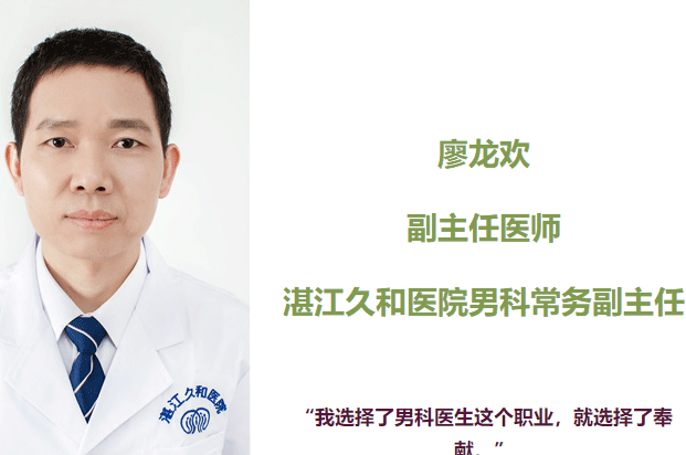 廖龙欢是湛江久和医院生殖中心的副主任医师,同时担任男科常务副主任。他本科毕业于广西医科大学临床医学专业,曾在广州军区总医院进修泌尿外科的腔镜技术。廖医生目前是湛江市医学会泌尿外科学会的委员,以及广东省健康管理学会男性健康专业委员会、湛江市医学会男科学分会和广东省医学会生殖分会男科学组的委员。