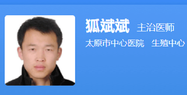 狐斌斌是太原市中心医院生殖中心的一名主治医生,拥有硕士学位。