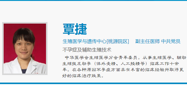 覃捷,任职于广西壮族自治区人民医院生殖医学与遗传中心,担任副主任医师,拥有医学硕士学位,同时是中华医学会生殖医学分会的青年委员。她从事生殖医学及辅助生殖技术(如体外受精和人工授精等)临床工作已有十多年。
