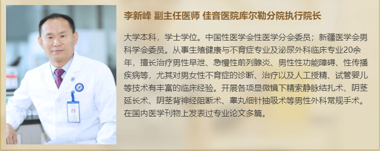 李新峰,担任新疆佳音医院生殖医学中心的副主任医师。