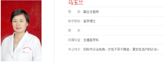 马玉兰,担任新疆维吾尔自治区人民医院生殖医学科副主任医师。