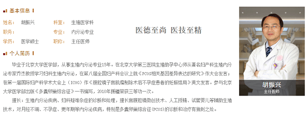 陶女士的评价:经验丰富,态度优良,真的非常感谢您帮我顺利怀孕,太激动了,特别感谢胡医生!