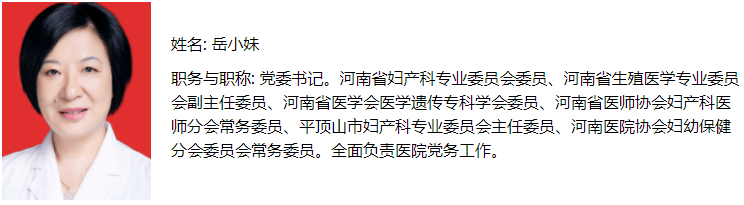 岳小妹是平顶山市妇幼保健院生殖遗传科的主任医师。