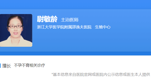 尉敏龄是浙江大学医学院附属邵逸夫医院生殖中心的主治医生。