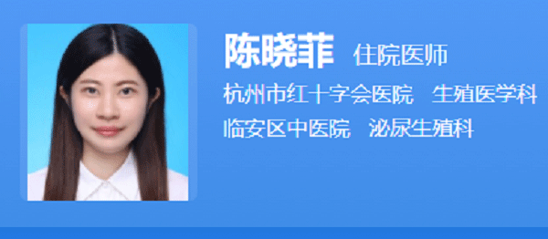 陈晓菲是杭州市红十字会医院生殖医学科的住院医生,毕业于浙江中医药大学,获得硕士学位。在学习期间,她师从于浙江省杏林工程的杰出人才、省级名中医丁彩飞教授。