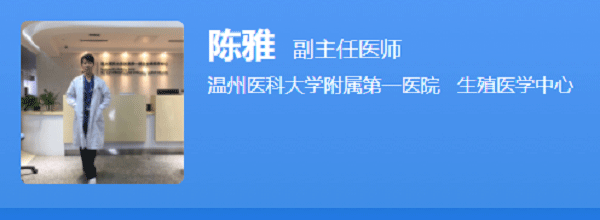 陈雅是温州医科大学附属第一医院生殖医学中心的副主任医师,她于2006年获得硕士学位。