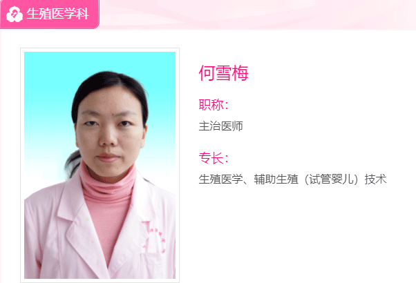 何雪梅是厦门妇幼保健院的主治医生,负责生殖医学中心的女性科临床工作。她于2009年7月毕业于中南大学湘雅医学院生殖与干细胞工程研究所,获得生殖医学硕士学位。毕业后,她在湘雅三医院妇科进行了为期一年的住院医师规范化培训,随后于2010年9月加入厦门市妇幼保健院,期间先后在妇科和产科进行轮转工作。