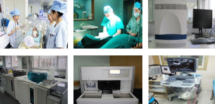医院批准的床位数量为680张。产程三维导航系统、安捷伦微阵列芯片扫描仪、高频呼吸机、GE婴儿辐射保暖台PandaWarmer、GE长颈鹿多功能培养箱、移动DR、低温等离子过氧化氢灭菌器、强生超声刀、麦默通真空辅助乳腺微创旋切系统、柯惠ForceTriad能量平台、自动化细菌分离培养系统、铱192后装治疗机、细菌鉴定及药敏分析仪、全自动血培养系统、血球计数仪、Sysmex CS-5100全自动凝血分析仪、自动清洗消毒器、脉动真空灭菌器、光学电子阴道镜、ABI 7500实时荧光定量PCR仪、飞利浦iE33 彩色多普勒超声仪、飞利浦HD11XE 彩色多普勒超声仪、飞利浦HD7 彩色多普勒超声仪、奥林巴斯宫腔镜系统、奥林巴斯高清腹腔镜系统、GE Voluson S6 彩色多普勒超声仪、GE Voluson E8 彩色多普勒超声仪、GE LOGIQ P3 彩色多普勒超声仪、东芝 SSA-660A 彩色多普勒超声仪、全自动血液检测仪、自动检验报告打印机、光子嫩肤仪、神经肌肉刺激治疗仪、全自动染色封片一体机、全自动酶免分析仪、罗氏 Modular 全自动生化分析仪、美国史赛克腹腔镜、全自动干式生化分析仪、Waters Xevo TQD TM 串联质谱仪、多排螺旋 CT、胚胎显微操作系统、全数字化 X 射线摄像系统、乳腺机、飞利浦三维彩超等医疗设备。