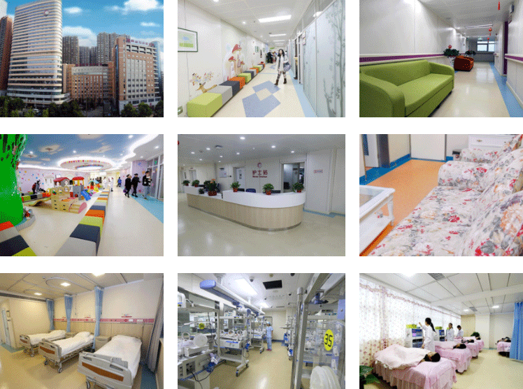 医院设有多个科室,包括妇科(分为五个子科)、中医妇科、普通妇科门诊、妇女保健科、生殖中心、产科(分为三科和孕期、产后保健门诊)、产房、普通儿科、新生儿科(分为两科)、中医儿科、小儿五官科、小儿康复科、儿童保健科、遗传优生科、乳腺科、内科、急诊科、健康教育科、馨月中心、麻醉手术科、超声科、放射科、病理科、药学部、检验科、输血科和药学研究部等临床和医学技术科室。