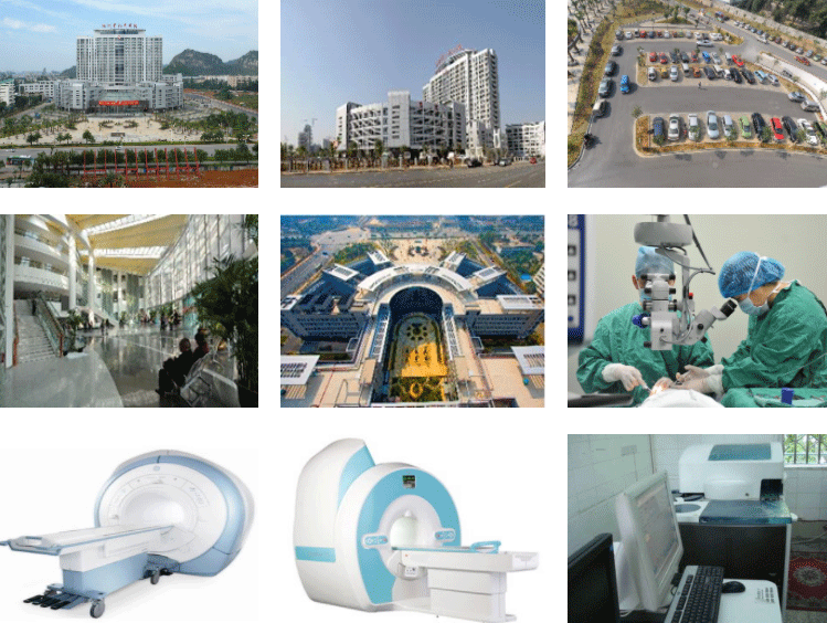 该医院目前开放1640张床位,拥有1700多个停车位,建有第二住院楼、特殊医技楼、学术厅、教学楼及学生公寓楼等多种建筑,第三住院楼也即将启用。医院配备了全中央空调系统、物流自动传输系统和门禁系统等现代化智能设施,成为桂中央地区环境、设备、技术和服务均属一流的现代化大型综合医院,是广西市级医院中建筑新颖、规模较大的医院。