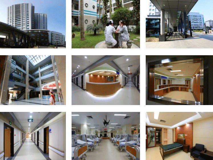 医院本部设有1160张床位,配备有西门子3.0T核磁共振仪、数字减影血管造影系统、直接数字化X光成像设备、直线加速器、GE64排螺旋CT和16排CT,以及全自动生化分析仪等多种医疗设备。